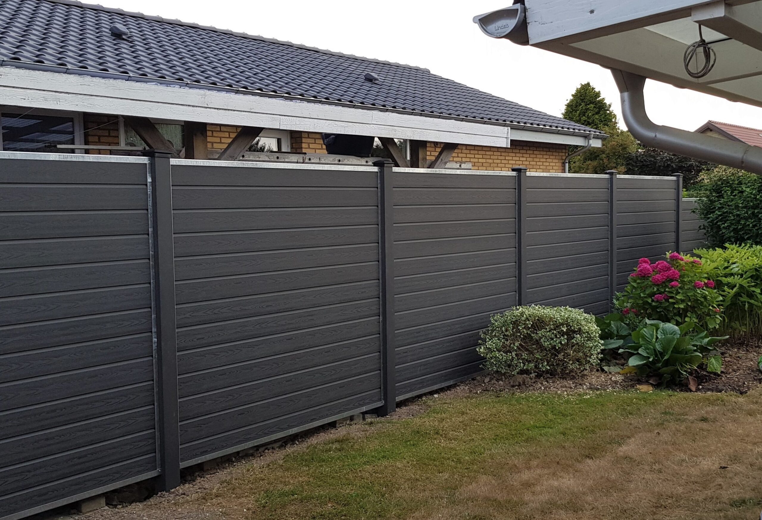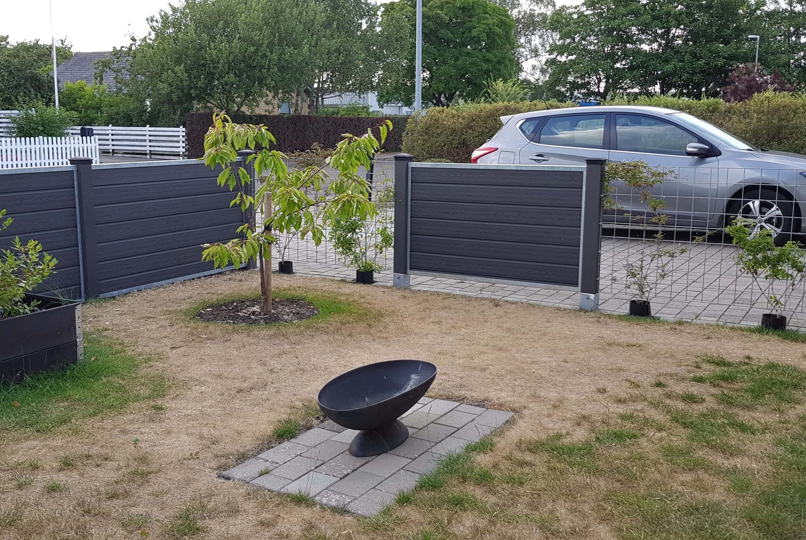 Vedligeholdelsesfrit hegn i komposit med kompositstolper.