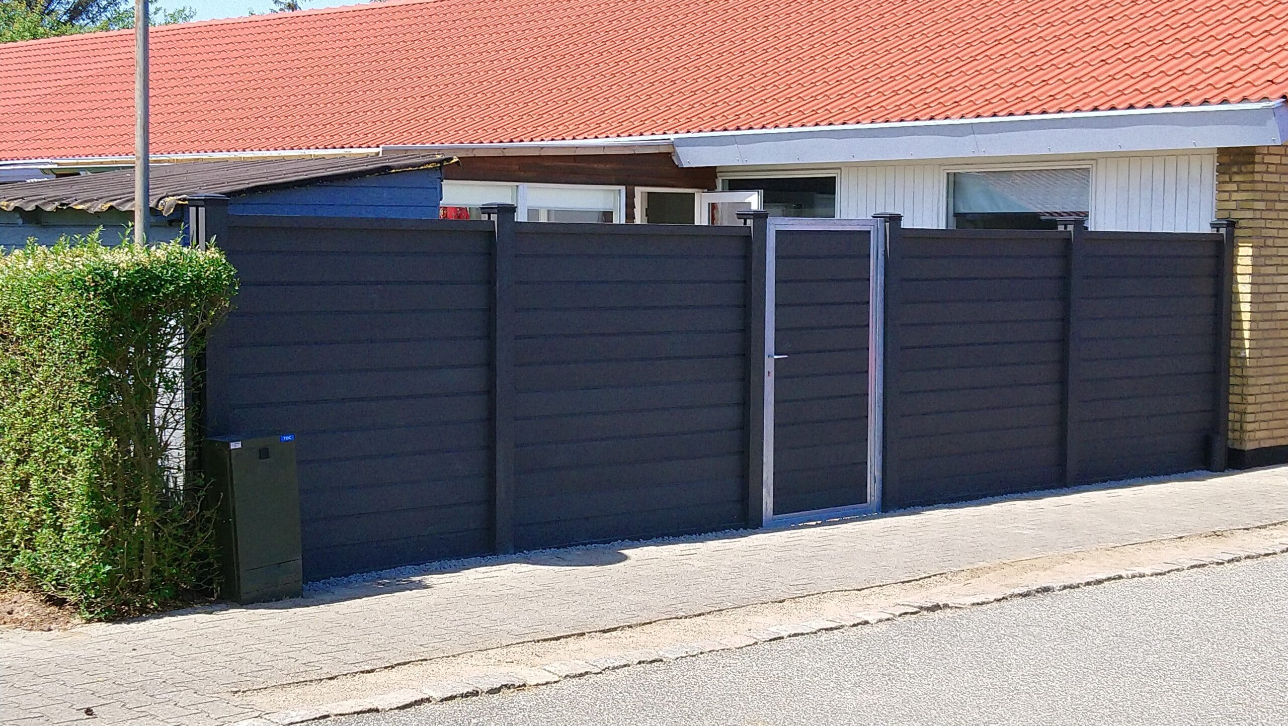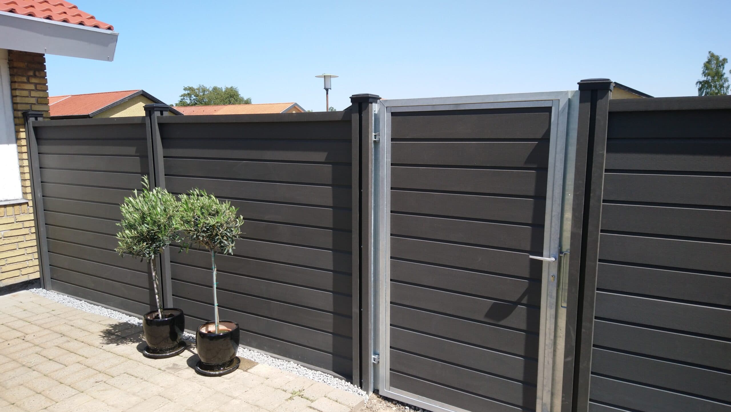 Gråsort komposithegn med låge.