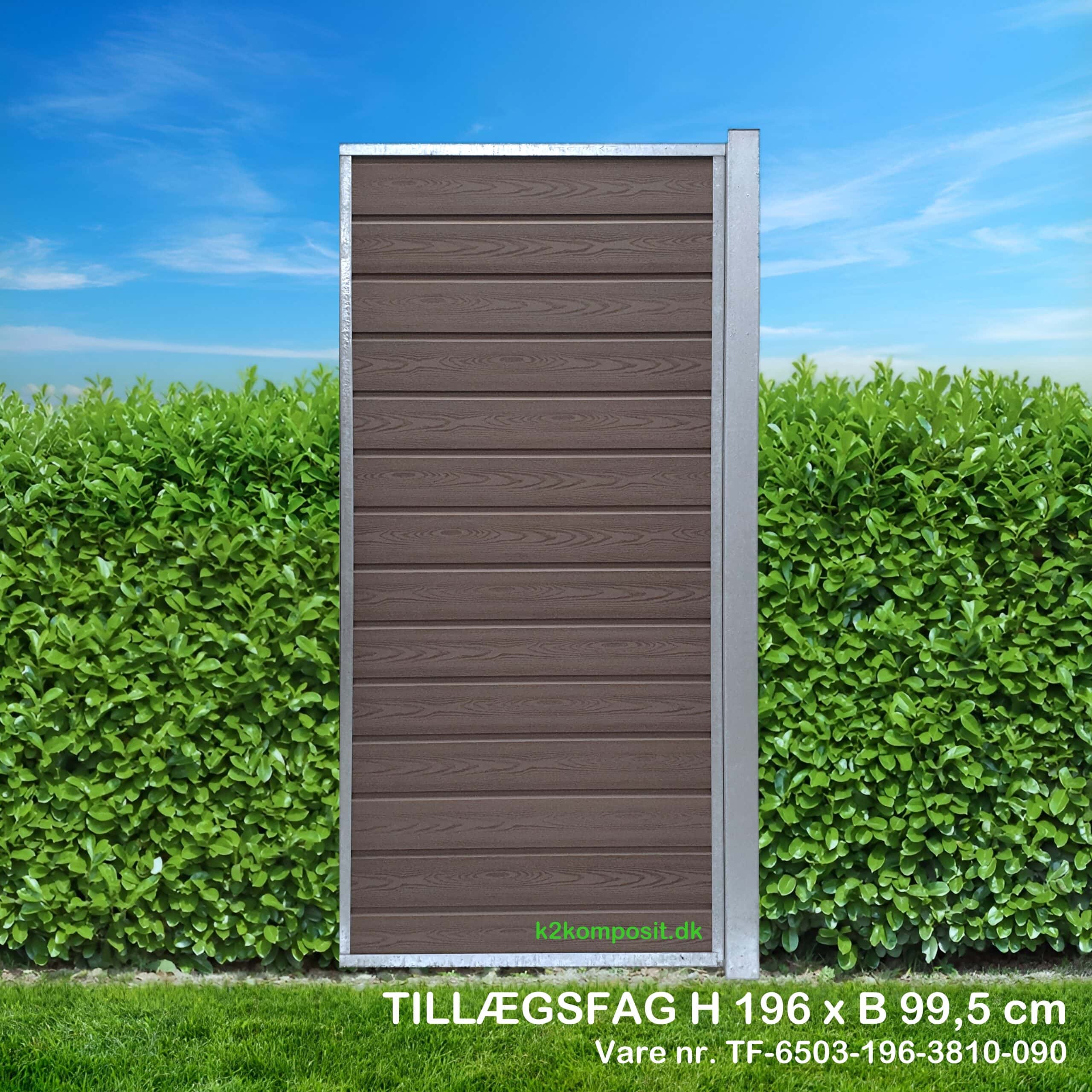 K2 KOMPOSIT hegn tillægsfag, varmgalvaniseret stål med mørk mahogni træstruktur komposit, H196 x B99,5 cm
