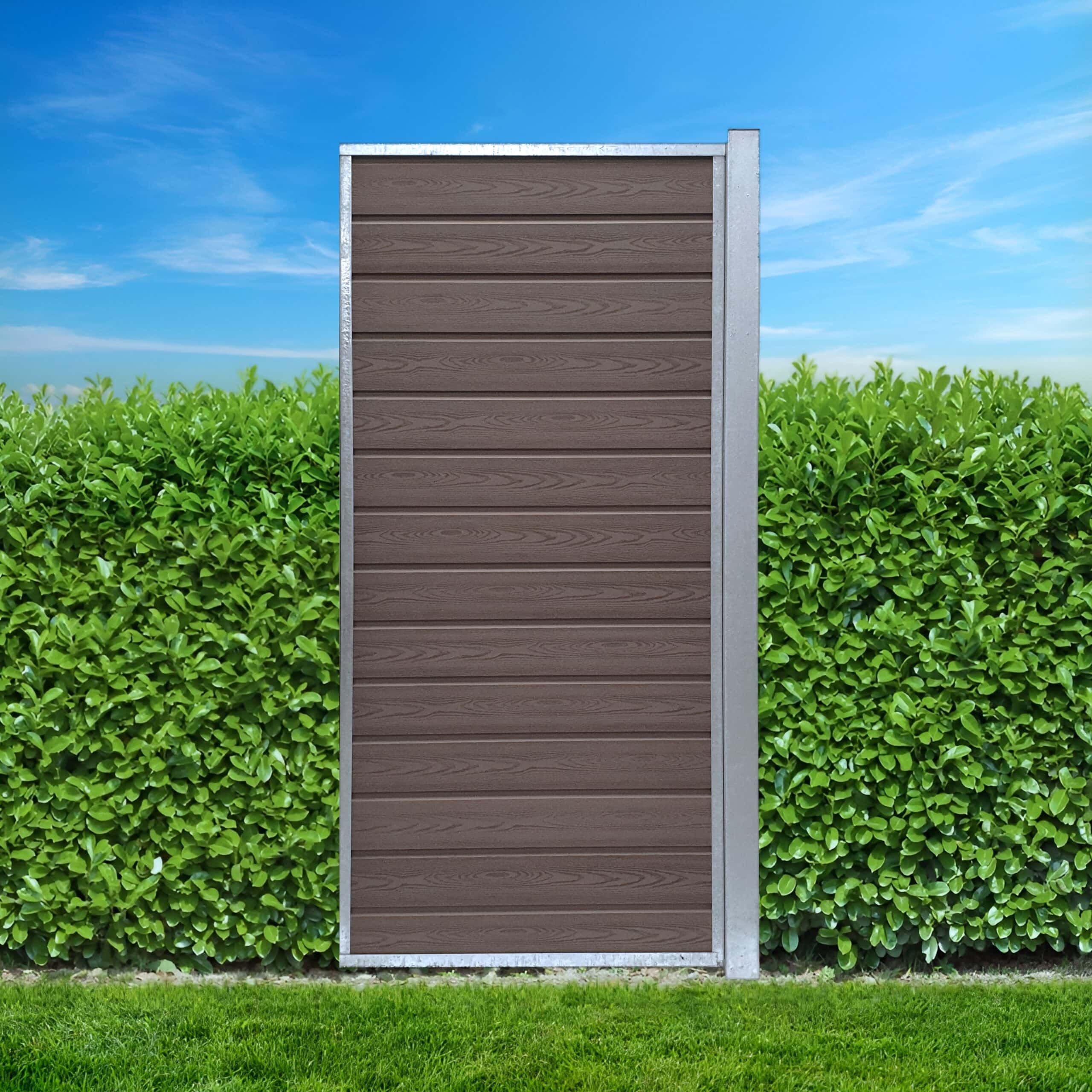 Home / Komposithegn / Komposit hegnsfag med stålstolper og u-skinner / Hegnsfag mørk mahogni træstruktur / Højde 196 / K2 KOMPOSIT hegn tillægsfag, varmgalvaniseret stål med mørk mahogni træstruktur komposit, H196 x B99,5 cm